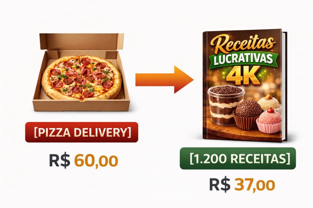 Ao realizar a sua compra, você recebe o acesso imediato ao Receitas 4k + Bônus e Materiais.
